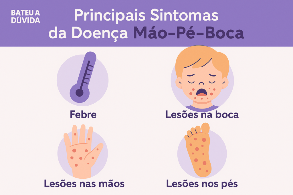 A doença mão-pé-boca é uma infecção viral comum em crianças, caracterizada por febre, feridas na boca e manchas nas mãos e pés. Entenda os sintomas, como ocorre a transmissão, quais cuidados tomar e quando é necessário procurar um médico. Veja também dicas práticas de prevenção com infográficos exclusivos.